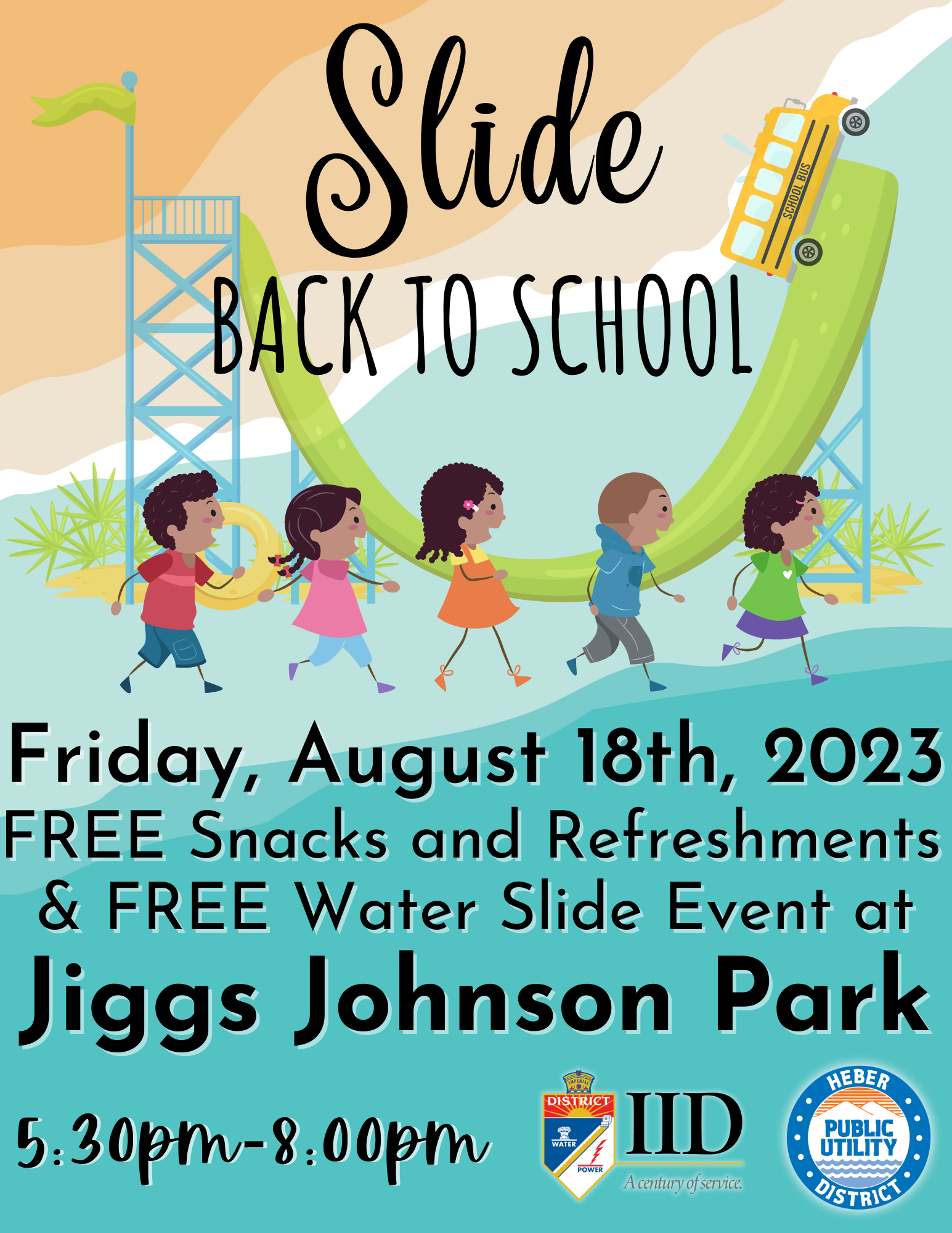 Friday, August 18 is our Slide Back to School event! This event put on by HPUD will have FREE Snacks and Refreshments including Water Slides for everyone to enjoy! Bring your children and come out to have a fun evening, do not forget to bring your towel and lawn chair!