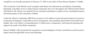 General Manager Recognized as Constituent of the Month for California’s 18th Senate District
